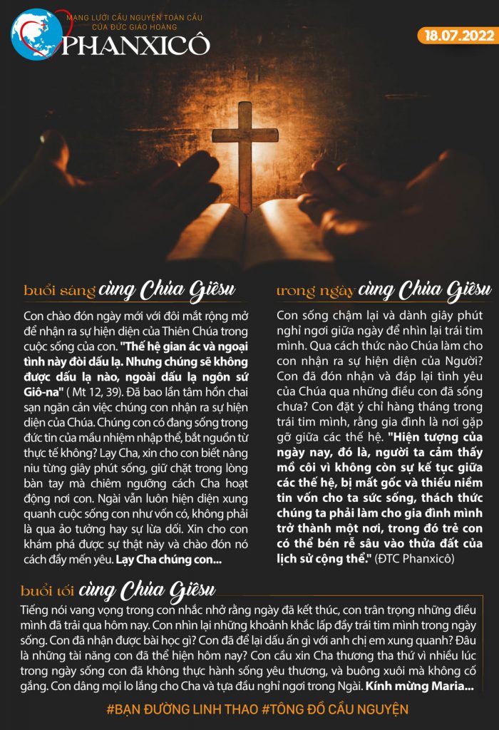 Mạng lưới cầu nguyện toàn cầu của Đức Thánh Cha – Ngày 18 tháng 7 năm 2022 0 By cdlavang on July 18, 2022 CẦU NGUYỆN - PRAYERS