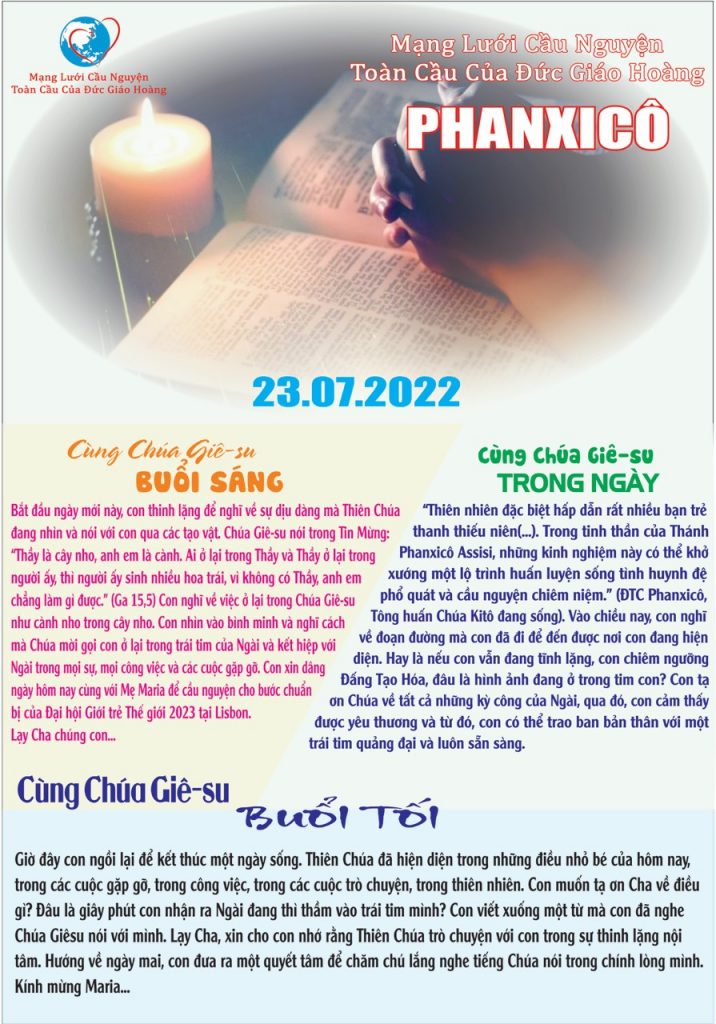 Mạng lưới cầu nguyện toàn cầu của Đức Thánh Cha – Ngày 23 tháng 7 năm 2022 0 By cdlavang on July 23, 2022 CẦU NGUYỆN - PRAYERS