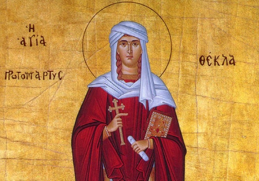 Theo truyền thuyết, thánh nữ Têcla là một nữ quý tộc ngoại giáo rất trẻ đẹp, sống vào thế kỷ thứ 1. Ngài là người thành Icôniô, nước Thổ Nhĩ Kỳ. Thánh nữ Têcla đọc nhiều sách triết học, tuy vậy những sách này chẳng thỏa mãn được khát vọng tìm hiểu về Đấng Sáng Tạo của thánh nữ. Khi thánh Phaolô tông đồ đến rao giảng Tin mừng của Đức Chúa Giêsu tại Icôniô, lời cầu xin muốn biết một Thiên Chúa chân thật của thánh nữ Têcla đã được khấng nhận. Nơi thánh Phaolô, Têcla cũng học biết được rằng một phụ nữ trẻ có thể sống độc thân và có thể trở nên hiền thê của Đức Chúa Giêsu. Và thế là Têcla chẳng ham ước gì hơn là tận hiến toàn thân để phụng sự duy một Thiên Chúa.
