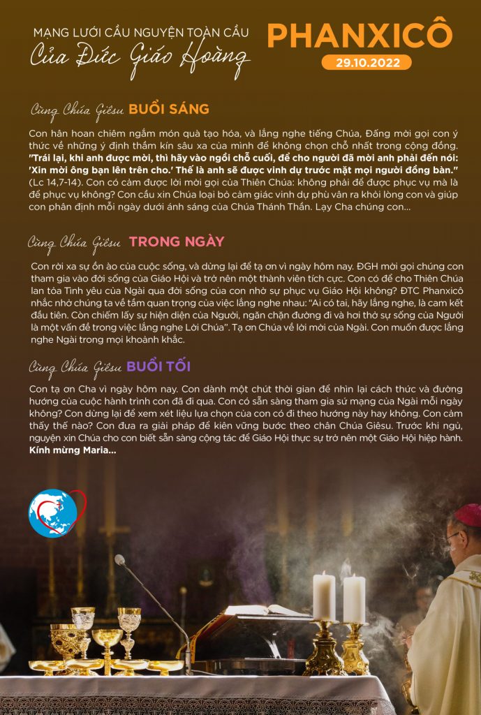 Mạng lưới cầu nguyện toàn cầu của Đức Thánh Cha – Ngày 29 tháng 10 năm 2022 0 By cdlavang on October 29, 2022 CẦU NGUYỆN - PRAYERS