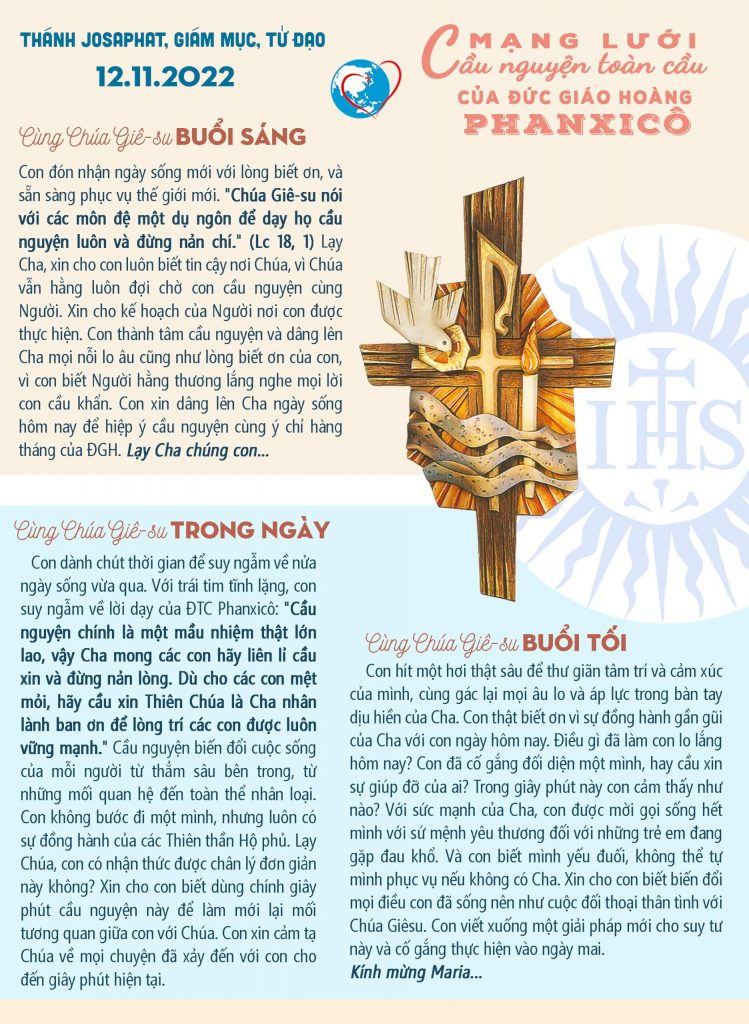 You are at:Home»CẦU NGUYỆN - PRAYERS»Mạng lưới cầu nguyện toàn cầu của Đức Thánh Cha – Ngày 12 tháng 11 năm 2022