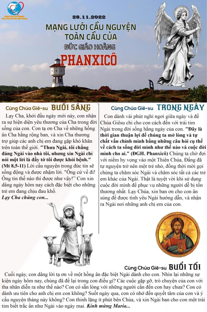 Mạng lưới cầu nguyện toàn cầu của Đức Thánh Cha – Ngày 28 tháng 11 năm 2022 0 By cdlavang on November 28, 2022 CẦU NGUYỆN - PRAYERS