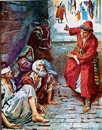 Một ngày sa-bát kia, Đức Giê-su đến nhà một ông thủ lãnh nhóm Pha-ri-sêu để dùng bữa (x. Lc 14, 1). Chứng kiến địa vị xã hội và tôn giáo của các khách mời, và cung cách ứng xử của họ khi chọn chỗ ngồi, Đức Giê-su đưa ra hai lời khuyên: lời khuyên thứ nhất dành cho khách mời (Lc 14, 7-11: bài Tin Mừng của ngày thứ bảy, sau Chúa Nhật XXX thường niên); và lời khuyên thứ hai dành cho chính người tổ chức bữa ăn (Lc 14, 12-14: bài Tin Mừng hôm qua). Khi nghe lời khuyên thứ hai này, có người đồng bàn với Đức Giê-su nói:
